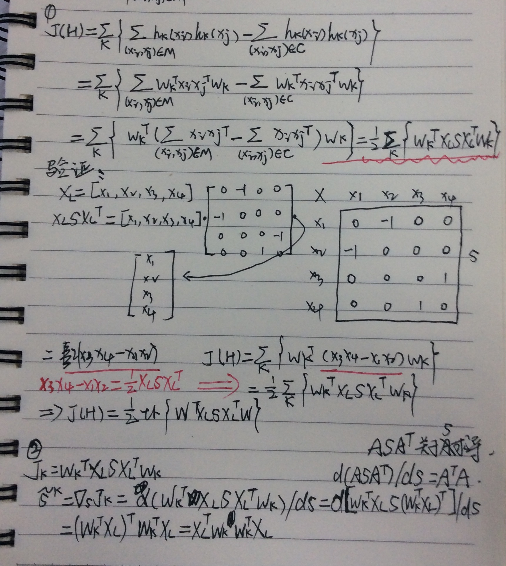 真不能再挖坑了,前面挖聊很多坑都没来得及填,从今往后,能写多少就是多少。Sequential projection learning for hashing这篇文章去年就阅读了,当时阅读完没来得及做笔记,这一段时间又重新拿来品读了一年天,并对其中的公式进行了推导,这篇文章作者主页上有slide,讲得挺好的。下面是自己的一些推导,由于公式编辑起来不急手写得快,所以就用笔记代替了。